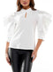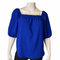 This Button Down Top Has Pointed Collar With Rhinestone Cutout, Puff Sleeves And A Stretchy Fit.