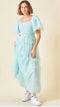 This chic pantsuit has a double-breasted jacket lining wide lapels and covered buttons. The jogger-style pants have an elastic waist and hem.