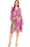 Body Con Maxi Dress With Mask Has A V-Neck, Belted Waist, Front Slit And S Stretchy Fit.