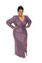 This Classic Sequin Gown Has A V- Neck, Long Sleeves And A Stretchy Fit.
