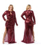 This Long Sleeve Surplice Gown Has Ruching Waist, Thigh Split And A Very Stretchy Fit.