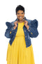 This studded leather jacket sit right below the waist. It has invisible hook closure and a relaxed fit. **Model wearing size Medium jacket. Pair this jacket with matching skirt or your favorite jeans or pencil skirt.