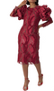 This stunning long sleeve maxi dress has a lace and sequin overlay with peak shoulders and zipper closure. This look is fully lined with light stretch.