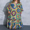 This Stunning V-Neck A-Line Midi Dress, Has Long Puff Sleeves, Zipper Closure Wit’s A Relaxed Fit.,