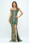 This Classic, Black And Gold Sequin Gown, Has Long Sleeves, Sits Off The Shoulder And Has A Very Stretchy Fit.