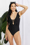 Featuring a contrast waistband and binding, this one-piece swimsuit will make you a shining star! It fits nice and snug so you can dive into the deep end, swim laps, or break out your board without any wardrobe malfunctions. Plus, it's made with shiny fabric and an open-back detail for some extra pizazz.