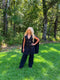 Women's Blazer With Wide Lapel And Single Button Closure. Wide Leg Crop Pant With Pockets