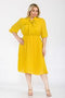 This Elegant Long Sleeve Button Down Jacquard Dress With Sash, Has A Beautiful Collar, Gold Buttons, And Box Pleated. No Stretch.