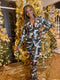 2 Piece Pant Set Has A Wide Leg Pant With Zipper Closure And A Jacket With Belt.