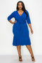 This Short Sleeve Midi Dress With Peplum Waist Has A Beautiful Flower Accent On Shoulder. This Look Has A Stretchy, Figure Flattering And Forgiving.