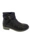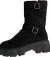 Womens mid-calf bling combat boots come equipped with 2 side buckles and a stretch insert, providing a comfortable sole for walking.