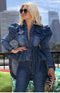 This Puff Sleeve Top Has A Peplum Waist With Belt.