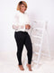 This classic peplum lace top with zippered closure accented with nude. It is the perfect compliment to a skirt or pant.