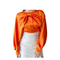 This Leather, Button Down Top With Bow, Has Long Poet Sleeves And A Tailored Stretchy Fit. Pair This Top With Your Favorite Pant or Skirt.