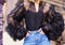 Plus Size, Distressed Long Sleeve Denim Jacket, Button Down, Cropped Waist, Ruffled Sleeves.