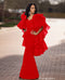 2 Piece Mermaid Style Skirt Set Has A Long Sleeve Blouse That Is Embellushed With Rhinstone Collar and A Mermaid Style Midi Skirt. This look is perfect for church, brunch or your special occasion. No stretch and true to size.