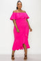 Two Toned Puff Sleeve Midi Dress Is Accented With A Beautiful Brooche, Zipper Closure And A Back Split. This Look Has A Very Stretchy Fit.
