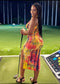 This fabulous body-con midi dress has a ruffled shoulder and ruffled peplum on hip.