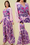 This Long Sleeve Surplice Gown Has Ruching Waist, Thigh Split And A Very Stretchy Fit.