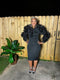 This Classic Surplice, Sequin Midi Dress Has Beautiful Long Puff Sleeves And A Stretchy Fit.